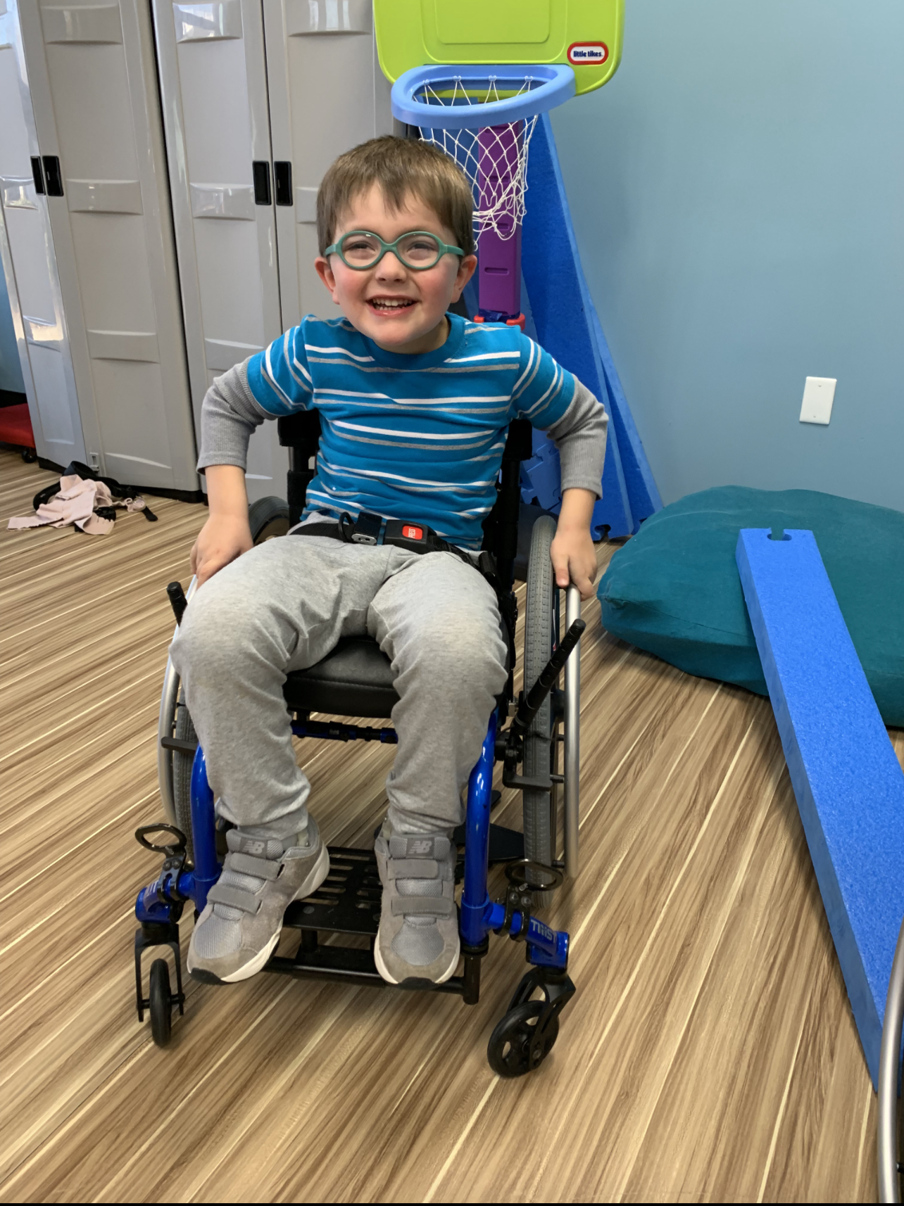 Collin continued to grow and develop, although remaining delayed on his milestones. He didn’t sit up assisted until around 10 months old, he was well over a year old before he crawled, and he did not take his first unassisted steps until almost 2.5 years old. His speech was delayed and his fine motor control was a struggle.